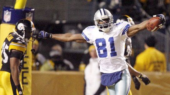 Dallas Cowboys Terrell Owens (81) celebrates after scoring a touchdown in a game against the Pittsburgh Steelers during the second half of play at Heinz Field in Pittsburgh on Sunday, December 7, 2008. Steelers defeated the Cowboys 20-13. (Vernon Bryant/The Dallas Morning News)