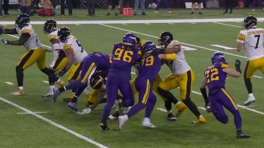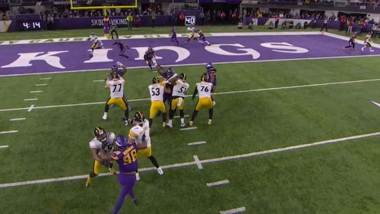 The Vikings were able to pressure Ben Roethlisberger without blitzing all night as the Steelers offensive line failed to recognize assignments and communicate in max protection. Even Najee Harris missed on some blocking assignments and Roethlisberger paid the price.