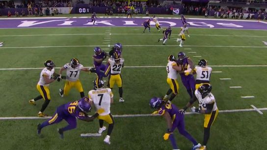 Once again the Steelers defense would be challenged and once again it would rise to the occasion after big tackles by Schobert and Witherspoon to stuff Alexander Mattison runs for only 2 yards. For a second time in the 4th quarter, it would be Fitzpatrick defending a pass to force the punt. The officials initially threw a flag, but picked it up as Fitzpatrick's coverage was perfect.