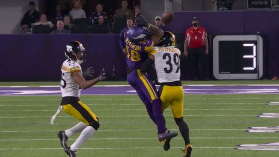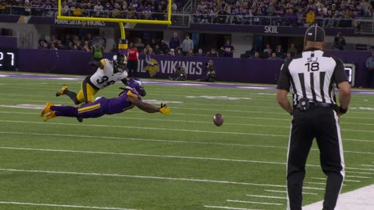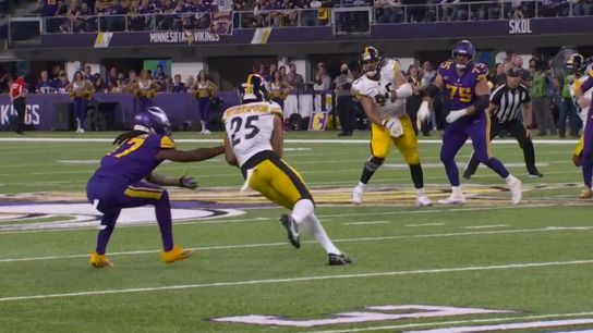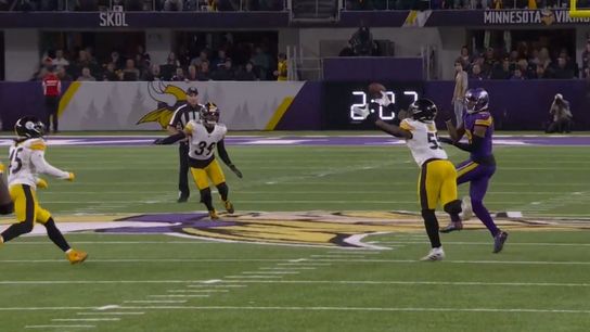 After a very poor 34-yard punt by Pressley Harvin, the Vikings powered into Steelers territory behind 5 consecutive runs. On the 6th play, Cousins threw a slant intended for Osborn, but Witherspoon anticipated the throw and jumped the route for his 2nd interception and a 41-yard return.