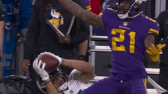 At the time, Ben Roethlisberger's pitiful stat line read: 8/14 for 68 yards, 0 TD and 1 INT. But his game would soon ignite and it began when James Washington made a spectacular catch for 29 yards as he wrestled the ball away from Vikings CB Kris Boyd when they simultaneously grabbed the pass.