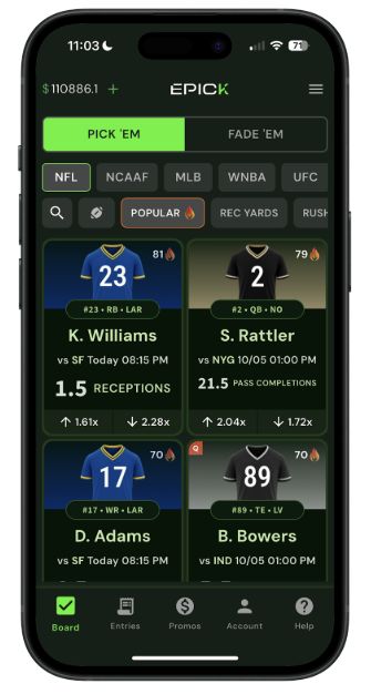 That’s why the launch of EPICK Fantasy and its Picks Mode is so exciting. Picks Mode is simple: choose whether a player will go Over or Under their projected stats. That’s it. No drafting full rosters, no confusing scoring. Just quick decisions that make every snap more meaningful.