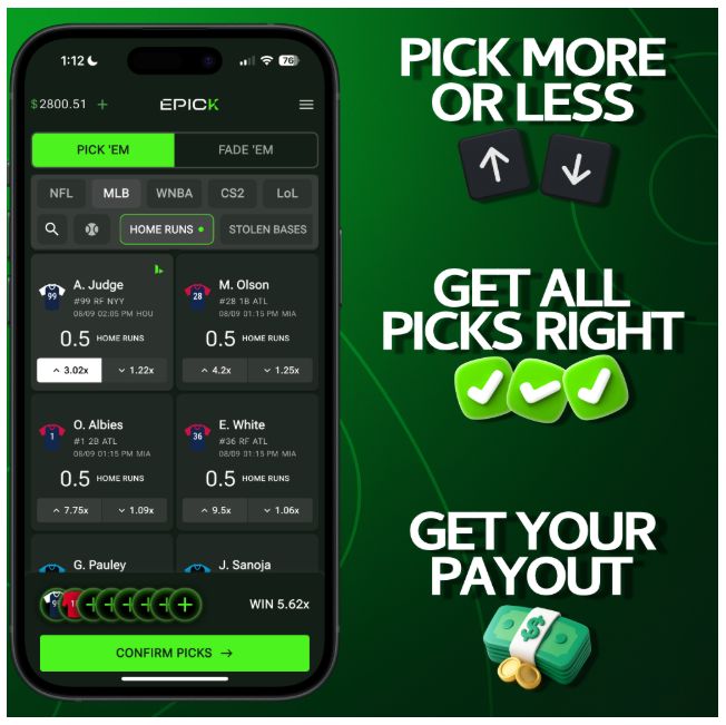 Unlike sportsbooks that only operate in a handful of states, EPICK is available in over 38 states across the U.S. That means whether you’re in Pennsylvania, Ohio, Texas, or Florida, you can download the app and start playing today.