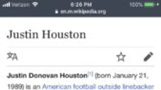 But that's not all! Steelers fans have actually spent the time to change Houston's Wikipedia page to state that he's a linebacker for the Pittsburgh Steelers.