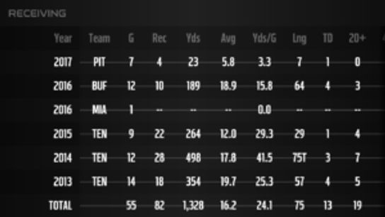 During his season in Buffalo he emerged as a capable red zone target for Tyrod Taylor. The Steelers desperately needed size at the wide receiver position after Sammie Coates became a non-factor, and Martavis Bryant being an unknown after his year-long suspension.
