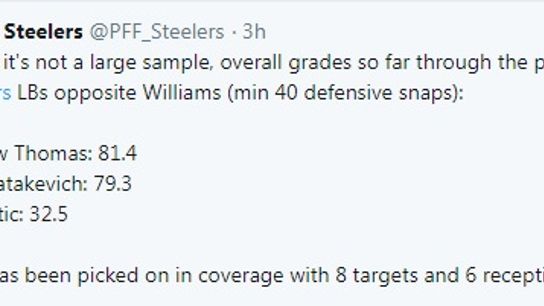 One of the few bright spots defensively that evening was the play of Thomas. Whether he was chasing down Packers receiver Jake Kumerow from 15 yards away after a botched play from the secondary or finishing tackles, not only were his athletic abilities on full display, also his ability to make plays from different parts of the field. Thomas efficiency has recently given him recognition from an analytics standpoint, as Pro Football Focus named him to the preseason week 2 'Team of the Week'. Even with a small sample size, Thomas' efficiency put him above all the linebackers currently on the Steelers roster.