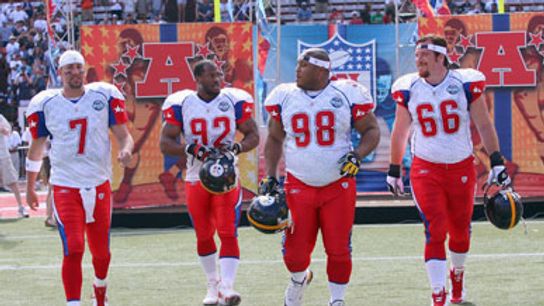 Ben Roethlisberger, James Harrison, Casey Hampton, and Alan Faneca at the 2008 Pro Bowl.