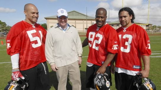 James Farrior, James Harrison, and Troy Polamalu at the 2005 Pro Bowl.