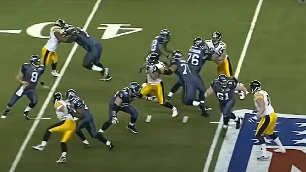 Roethlisberger dove in and scored, but it was made close when Seattle MLB D.D. Lewis collided with Roethlisberger as he was about to clearly cross the goal line. A block by Steelers center Jeff Hartings knocked Lewis down and prevented him from making the play.