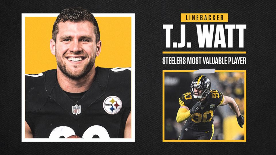 Thursday morning, the Pittsburgh Steelers announced their 2019 Most Valuable Player. With 14 sacks, 7 forced fumbles and 4 fumble recoveries heading into Week 17, it's no surprise that outside linebacker, T.J. Watt gets the honors.