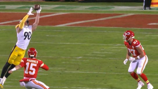 The game was surprisingly competitive as the Steelers' defense more than rose to the challenge through most of the first half. They were swarming and pressuring Patrick Mahomes, keeping the Chiefs from being able to mount any kind of offensive momentum, even after a 55-yard punt return set them up with from the Steeler 22-yard line. Most thought it was the opening the Chiefs needed, but T.J. Watt deflected a Mahomes pass right into the hands of Devin Bush, who intercepted it and was a stride away from possibly making it 7-0 Steelers.